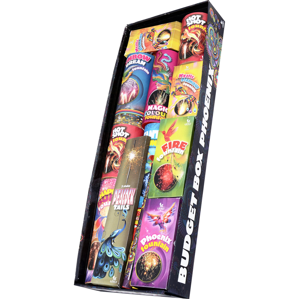 Effektbeschreibung Abwechslungsreiches Dekosortiment mit vielen verschiedenen Fontänen und 5 Morning Glory Sticks.