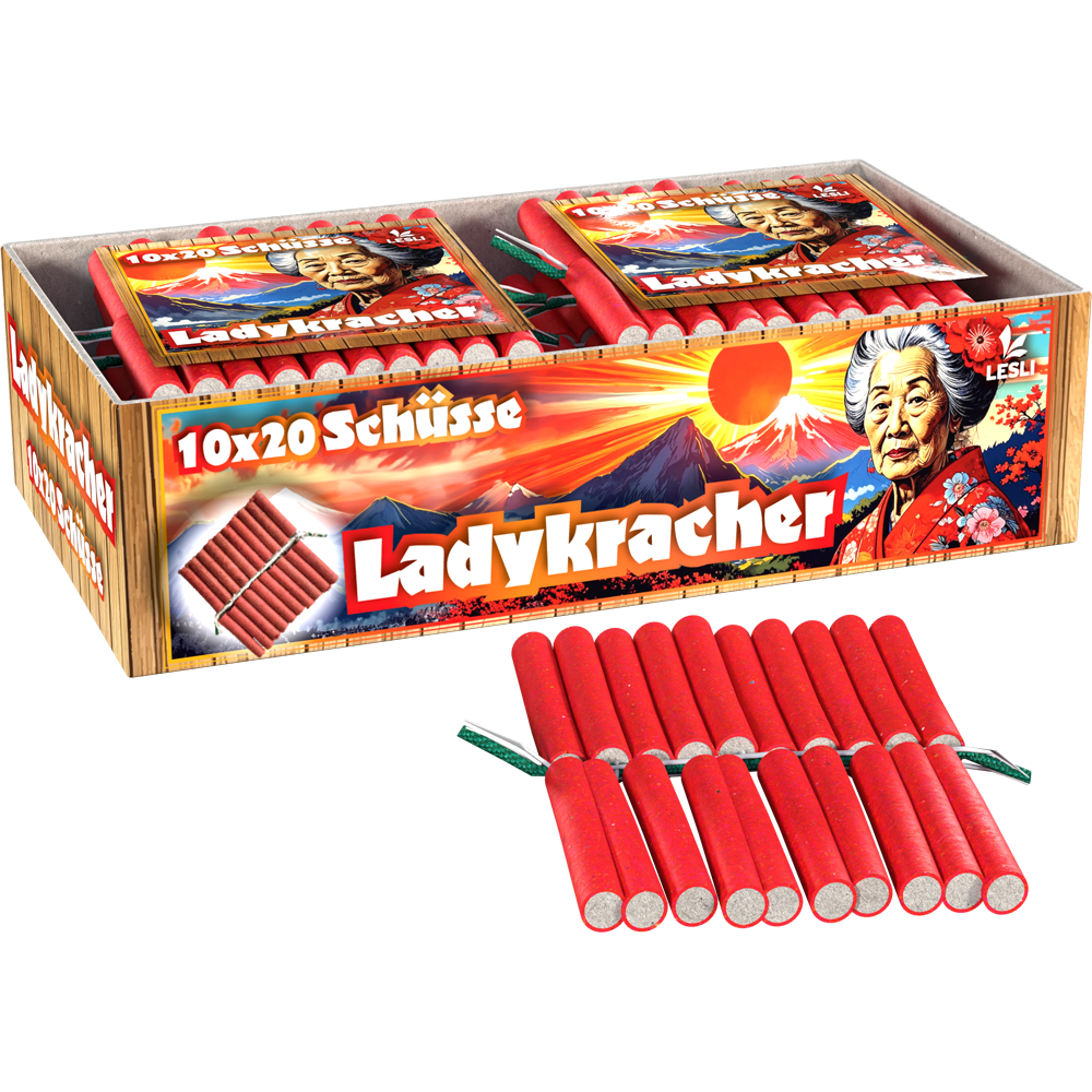 | Effektbeschreibung | Lass sie krachen! 200 krasse Shots, die dich vor Freude tanzen lassen. „Ladykracher“ ist nichts für Weicheier, diese Dame verschafft sich Gehör! |