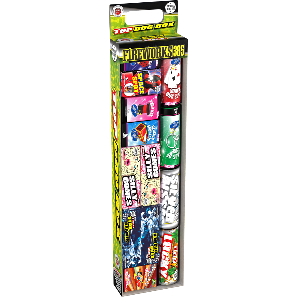 Effektbeschreibung Super großes Feuerwerk-Sortiment das man das ganze Jahr kaufen und zünden darf. 22 große Teile!