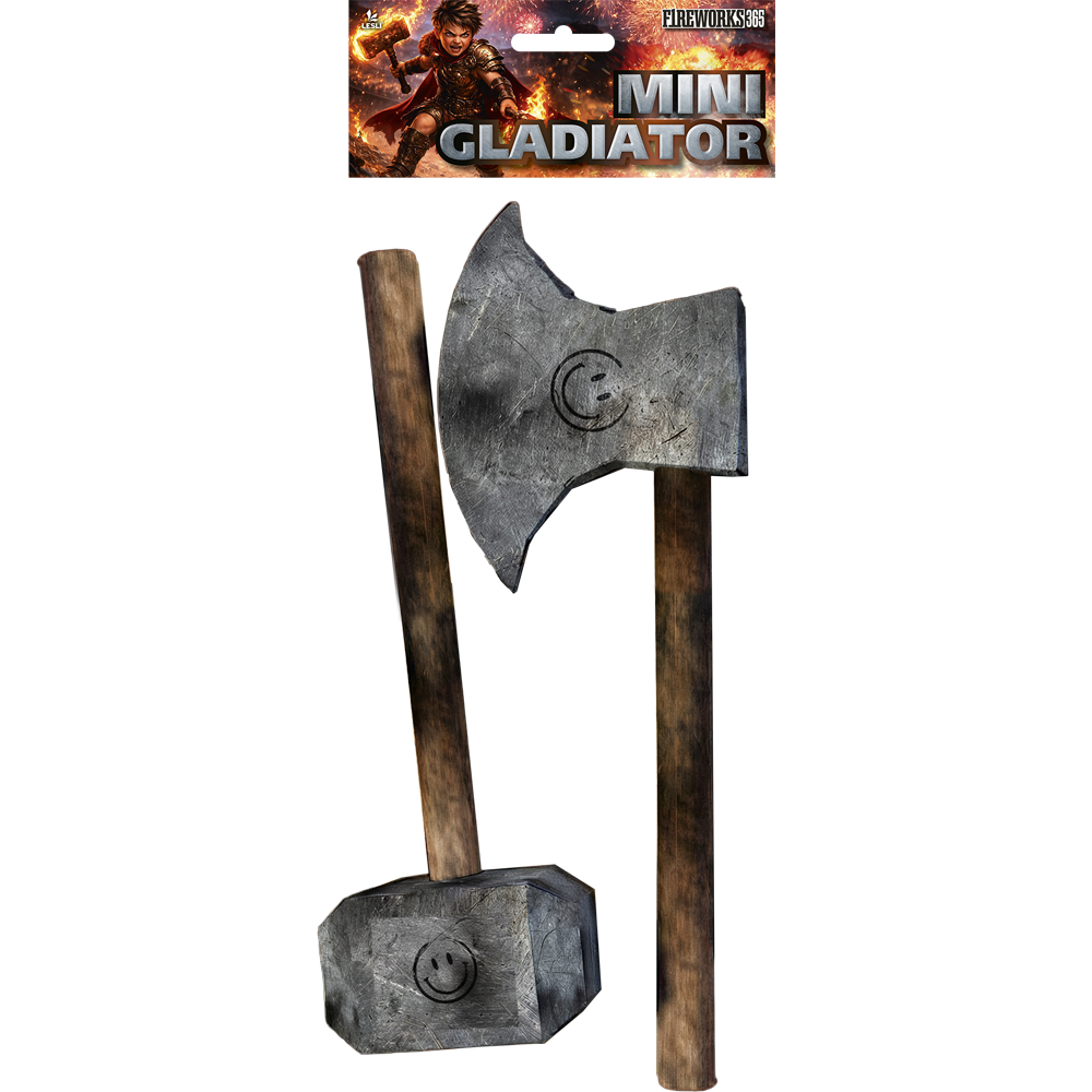 Effektbeschreibung Mächtig gewaltig! Der Mini-Gladiator beginnt mit Rot und endet in einem Regenschauer aus Gold und Silber, zwei besondere Fackeln!