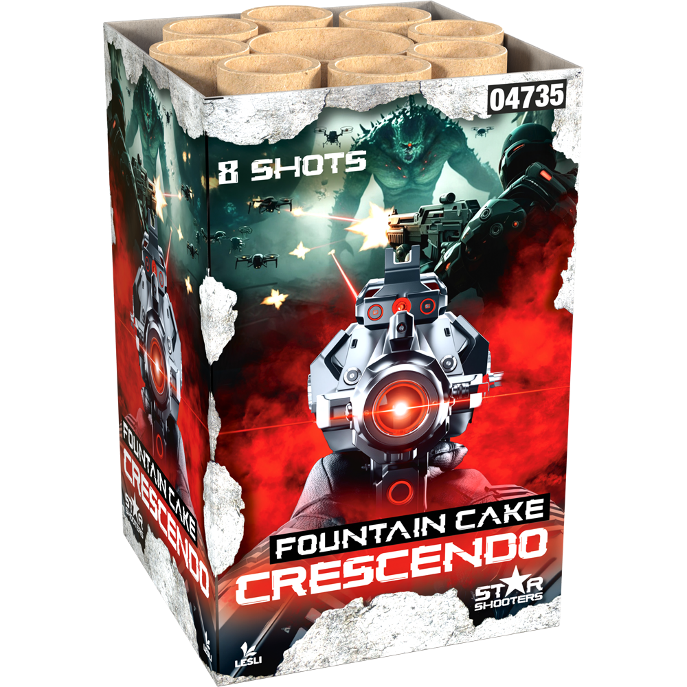 | Effektbeschreibung | Fängt klein an, endet jedoch groß: „Crescendo“ hat 8 Schuß voller Glitzer und Farbe in der Luft! |